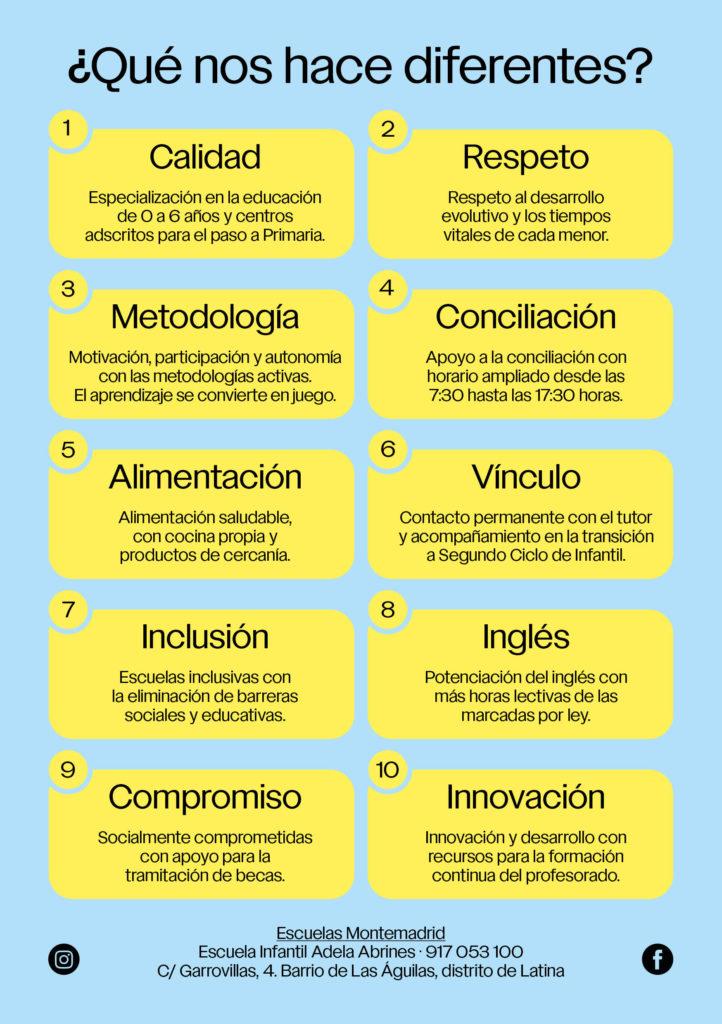 Escuelas Infantiles Montemadrid: • EI. Adela Abrines • EI. Alfredo López • EI. Conde de Elda • EI. García Pita